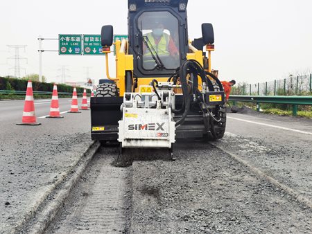 With a productivity of 400m/hour at a depth of 50mm, the Simex PL 45.20 attachment has proved invaluable for Anhui Shunying Trafc Engineering.