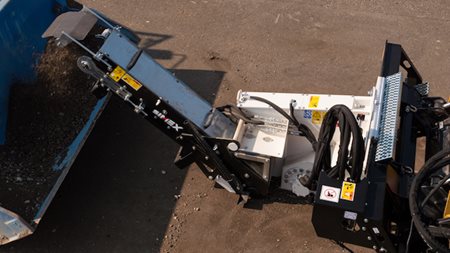 Ideal zum Verlegen von Glasfaserkabeln mit hydraulischer Seitenneigung für vertikale Gräben in jeder Situation, auch bei nicht parallel zur Fahrbahn stehendem Trägergerät. Auch mit Förderband verfügbar.