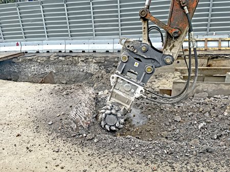 Studied for creating one or two small trenches at sides of rail tracks to be filled later with sound-insulating material.