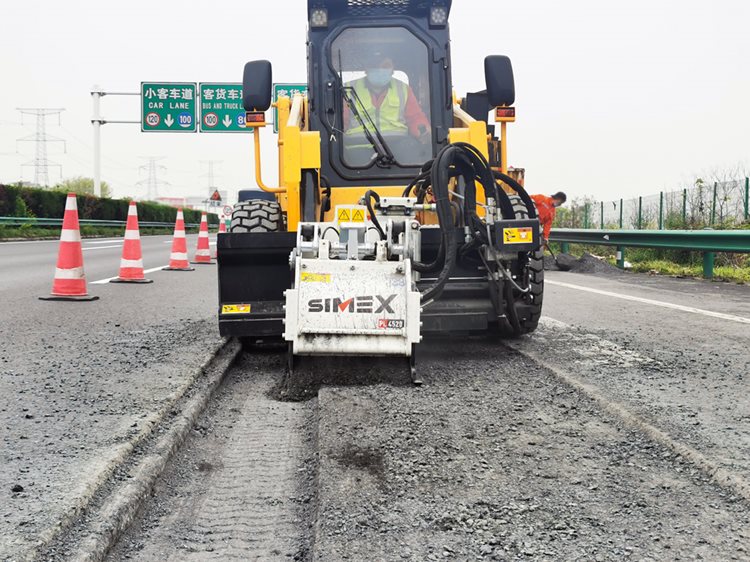 Anhui province, eastern China. Anhui Shunying Traffic Engineering Co. used a PL 45.20 asphalt planer, sold by our importer ATE, for road surface maintenance work. On high-traffic roads, where it is not possible to completely block the vehicular traffic, the PL 45.20 for compact loaders proved to be the ideal solution for milling, at various depths, for the subsequent restoration of the surface course.